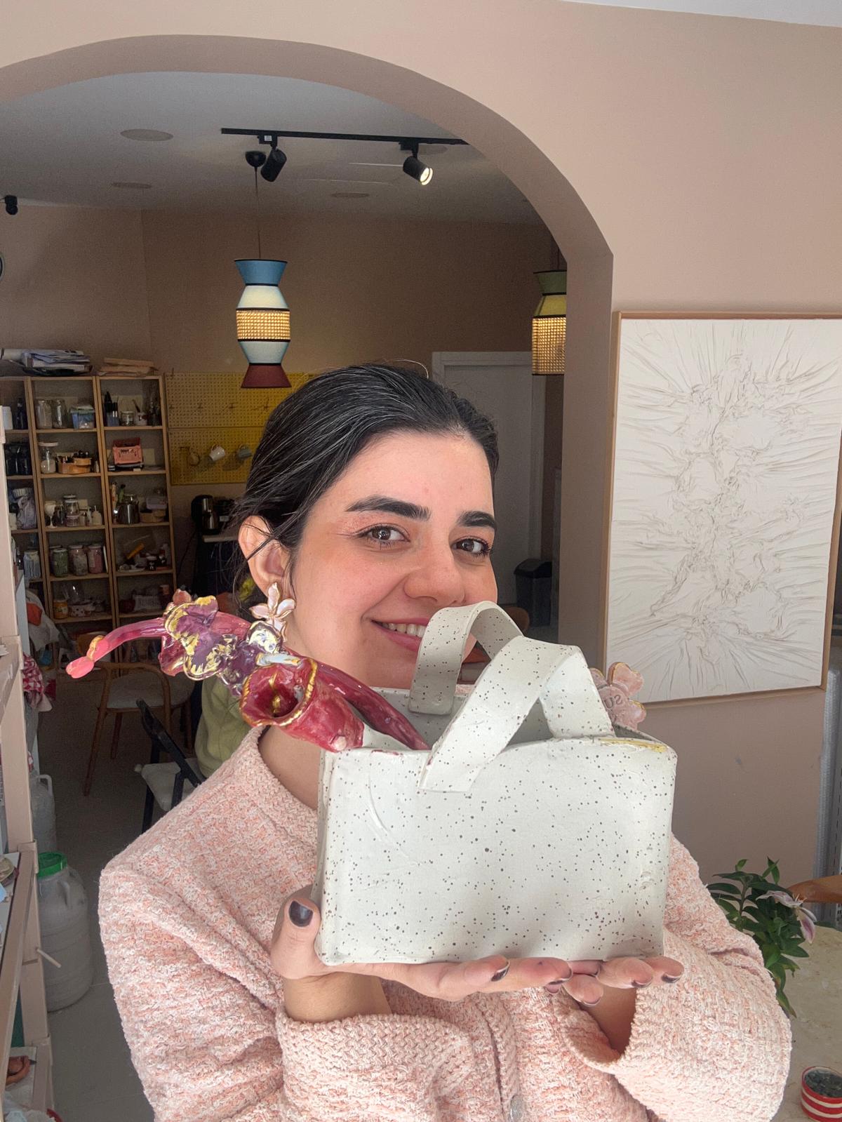 Benekli stonware çamurundan tasarladığım bu tasarım isterseniz vazo , isterseniz evinizin sevdiğiniz bir köşesine dekoratif olarak kullanabilirsiniz.