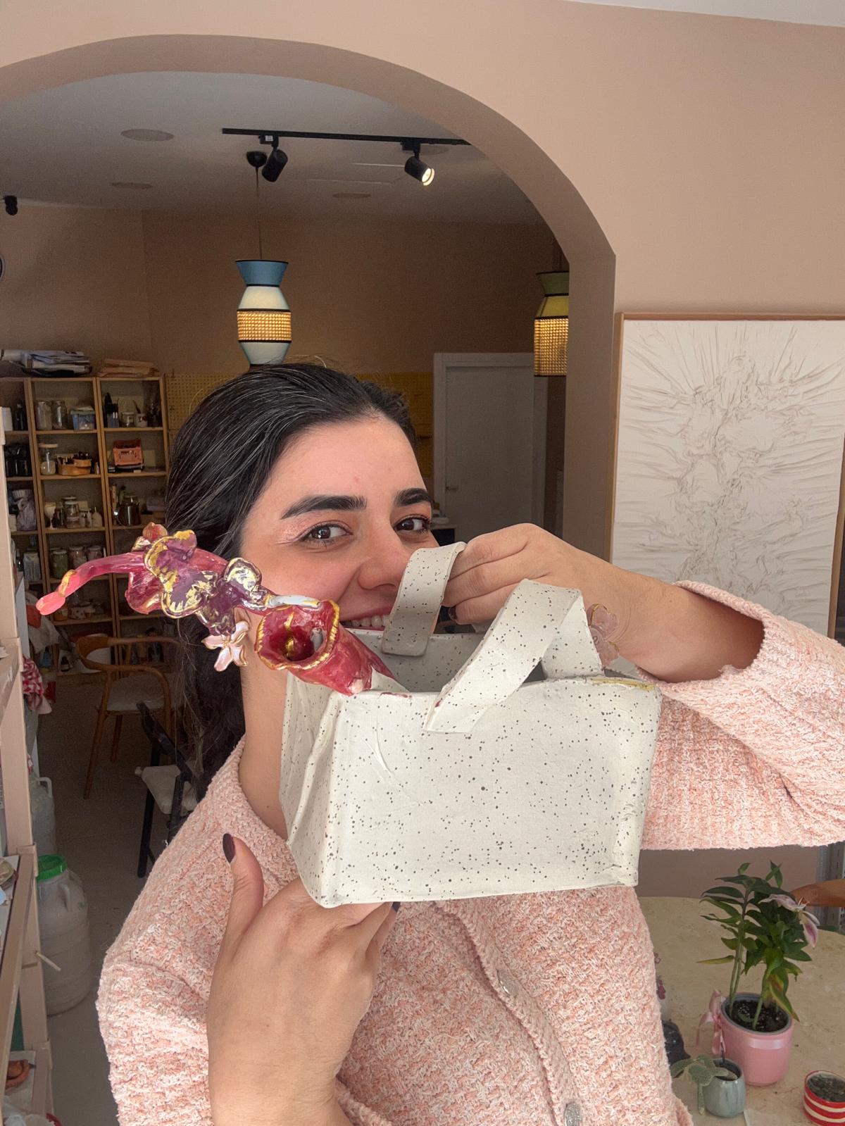 Benekli Stonware Mini Çanta Vazo